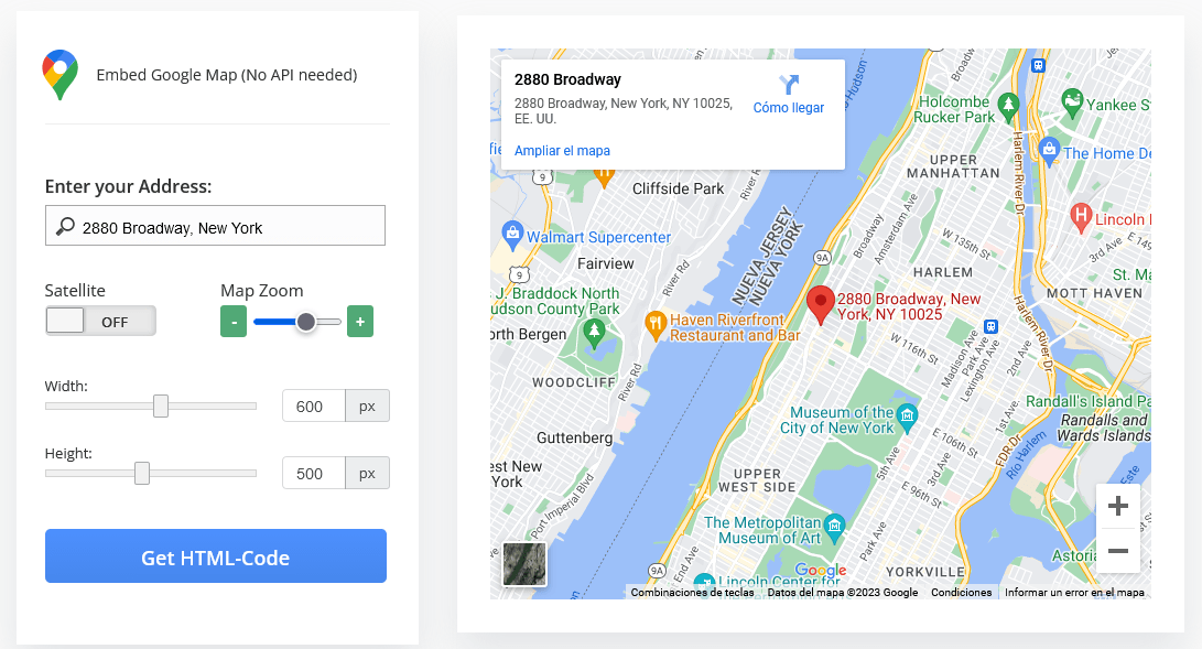 Si no deseas usar un plugin para crear mapas de Google en WordPress, puedes hacerlo manualmente. Puedes agregar Google Maps en WordPress con las funciones incorporadas integradas. Una opción mucho más fácil es usar un servicio que te permita generar códigos de inserción para Google Maps.