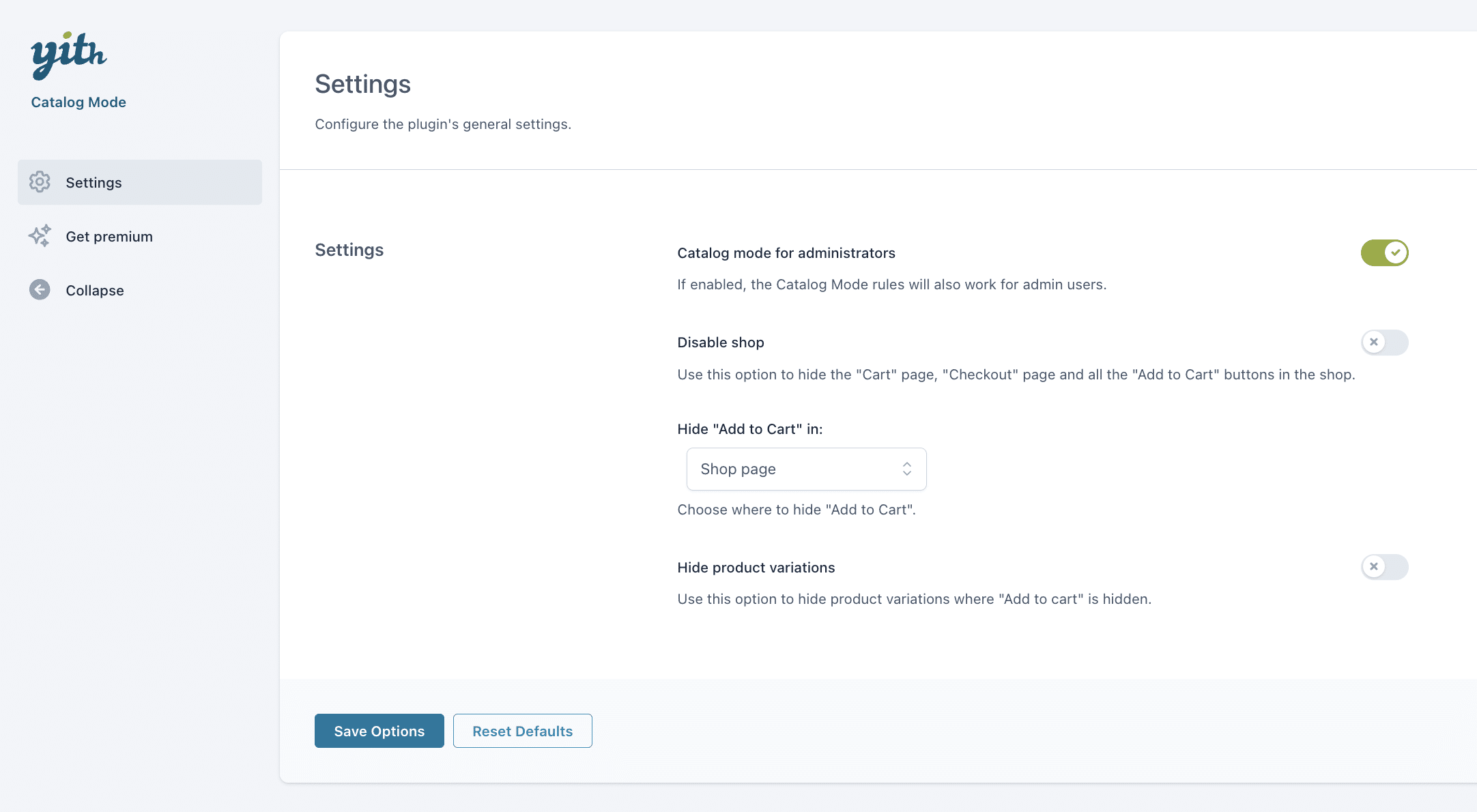 - Dirígete a YITH > Catalog Mode en el menú lateral de WordPress.