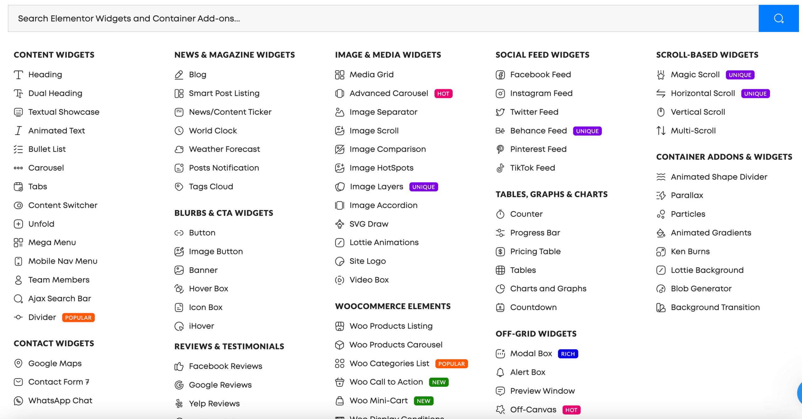 En esta guía, nos enfocaremos en funciones, widgets y extensiones que realmente destacan y valen la pena considerar. Si bien muchos de estos addons incluyen características adicionales, el objetivo no es analizar cada detalle, sino ofrecerte una visión clara y bien informada.
