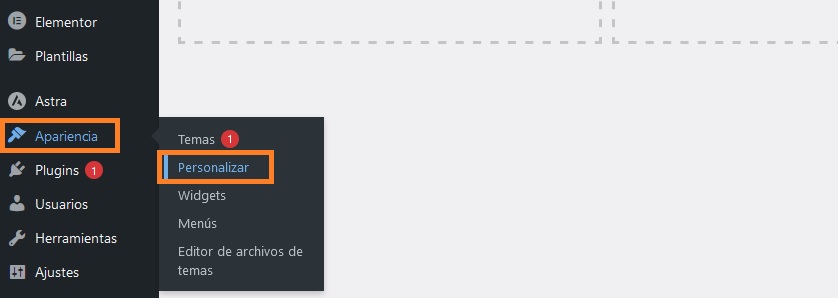 Si tu versión de WordPress es de 4.7 o superior, puedes agregar CSS personalizado fácilmente porque hay una herramienta incorporada en el personalizador de temas. Para usarlo, ve a la sección Apariencia y seleccione Personalizar en tu tablero.