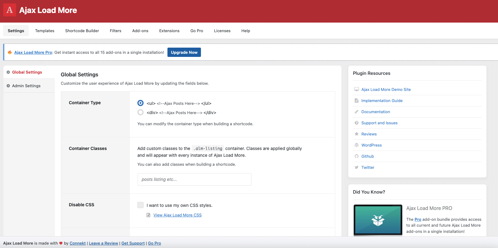 - Ve a Configuración > Ajax Load More en tu panel de WordPress.