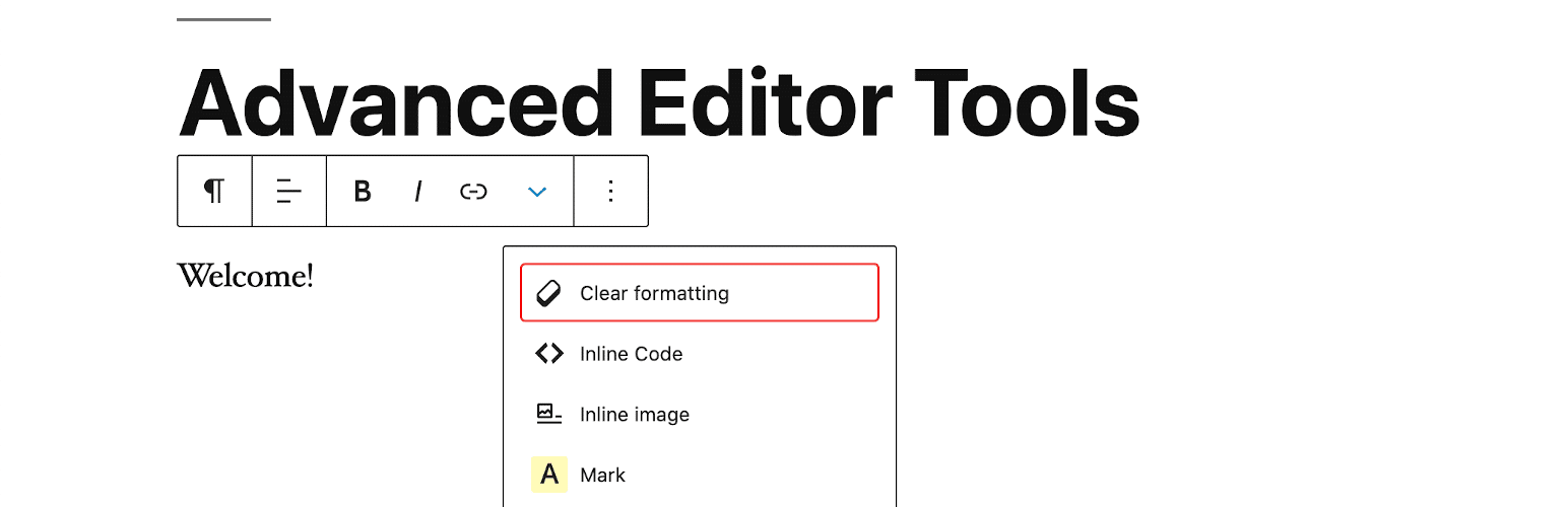 Una vez activado, dirígete a Ajustes > Advanced Editor Tools para personalizar la barra de herramientas del editor. Aquí puedes añadir opciones avanzadas de formato que te ayudarán a estilizar las letras iniciales de tus párrafos.
