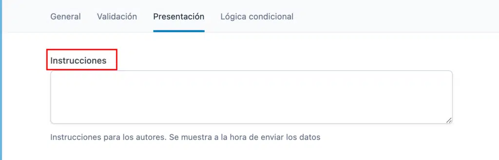 Para redactar un conjunto de directrices, simplemente ingresa la información requerida en el campo correspondiente. Por ejemplo, podrías agregar: «Por favor, completa tu dirección de correo electrónico antes de publicar tu entrada».
