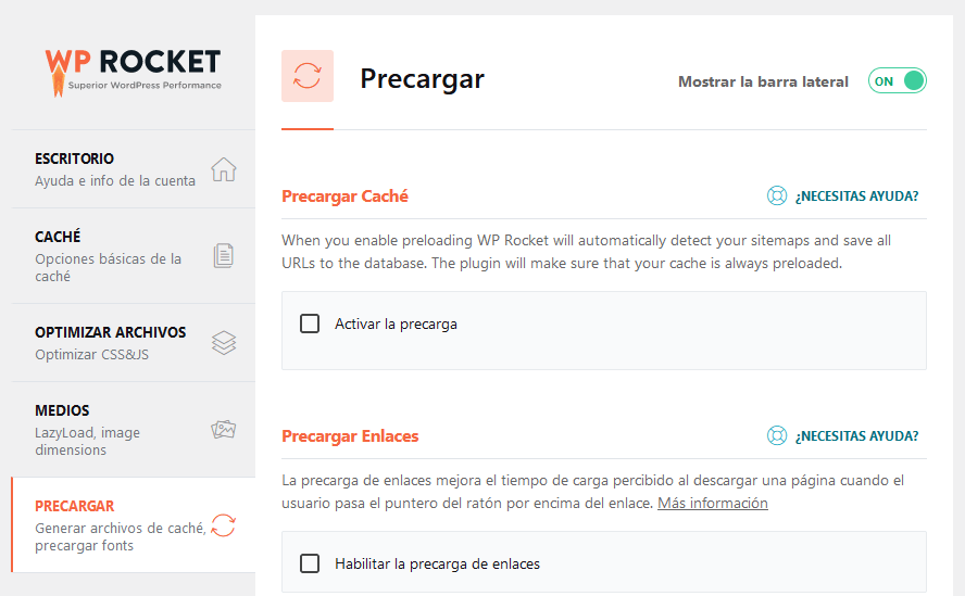 - Caché de búsqueda: Activa la opción de «Preload» para generar una caché de tus páginas de manera anticipada. Esto asegura que los visitantes experimenten tiempos de carga rápidos, incluso en su primera visita a una página específica.