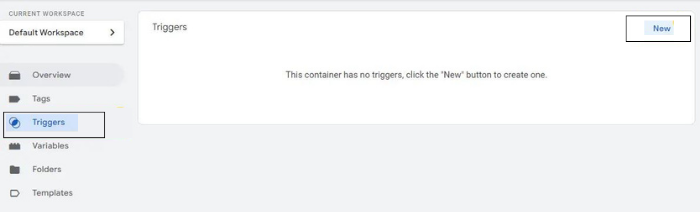 6. Luego debes volver a la página inicial y acceder al menú Triggers y después se debe hacer clic en New.