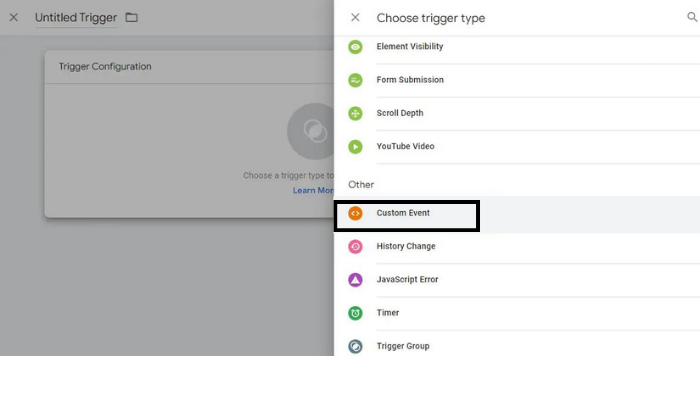 7. Elige la opción Custom Event.