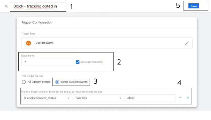 - Fire this trigger when…: dl.cookieconsent_status contains allow