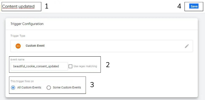 - This trigger fires on: Some Custom Events