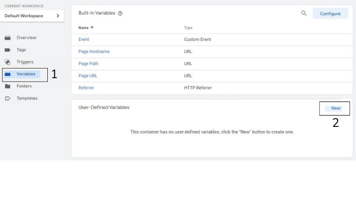 3. Luego accedemos a la página Variables y después haz clic en New.