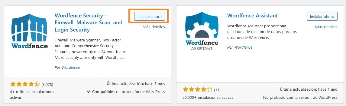 1. Instala el plugin de seguridad de Wordfence.