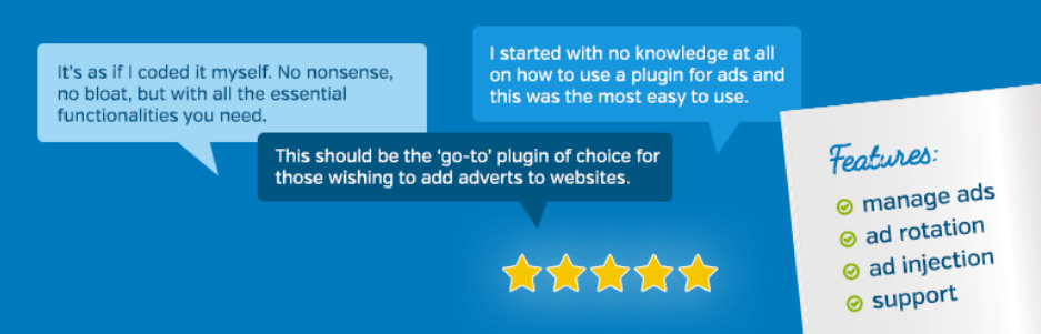 Quizás uno de los plugins más destacados para integrar publicidad en WordPress. Con más de 200,000 instalaciones activas y valoraciones sobresalientes.