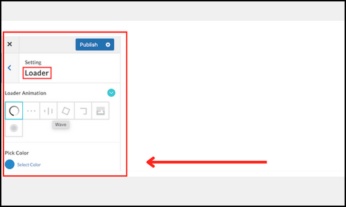 Aquí puedes elegir una nueva animación haciendo clic en las diversas miniaturas disponibles en el cuadro ‘Animación del cargador’. Si deseas cambiar el color del precargador, simplemente selecciona un nuevo color en la casilla ‘Elegir color’.