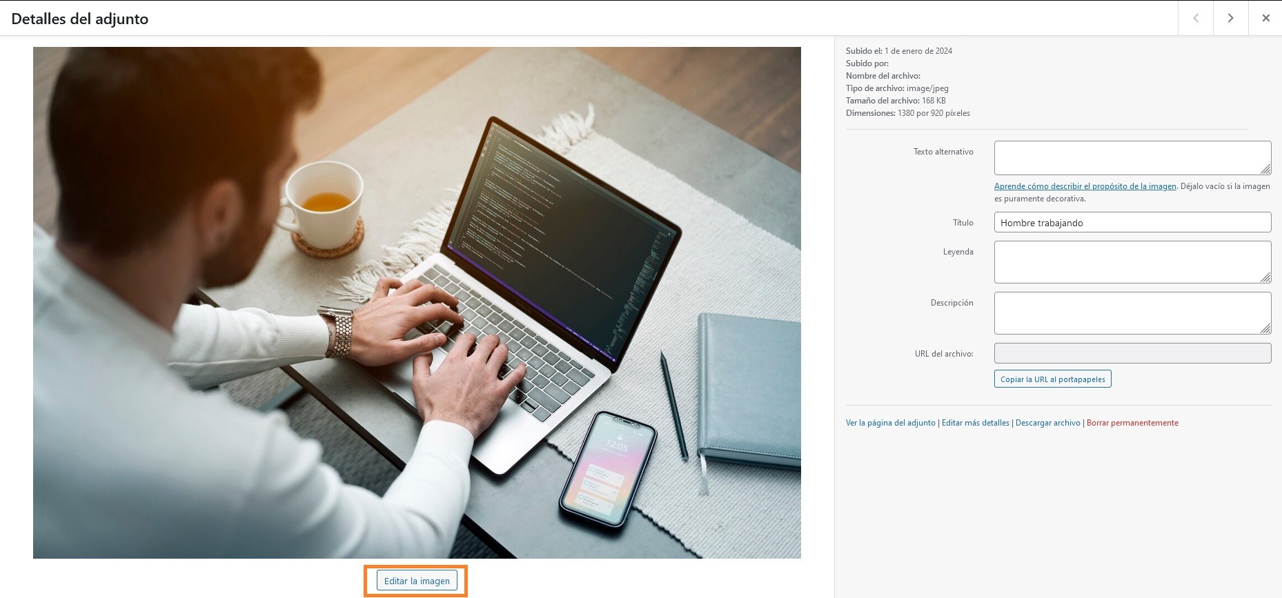Si sólo necesitas editar una o dos imágenes, esto es útil, pero es mejor cambiar el tamaño de todas las imágenes a través de la página de configuración.