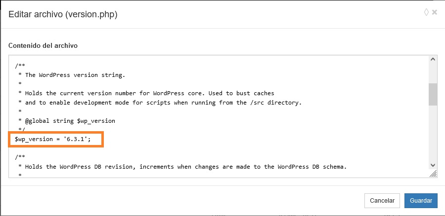 Además, puedes ver la versión de WordPress abriendo el archivo version.php de tu cuenta de alojamiento web.