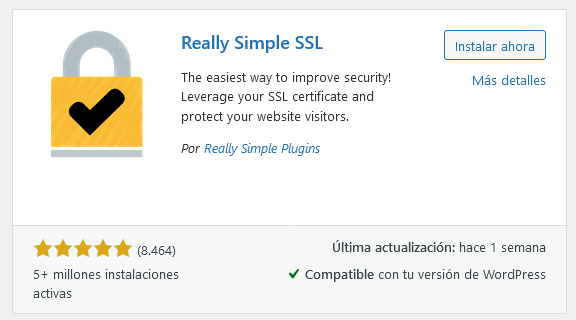 En el buscador, escribe «Really Simple SSL» y luego haz clic en «Instalar» y «Activar».