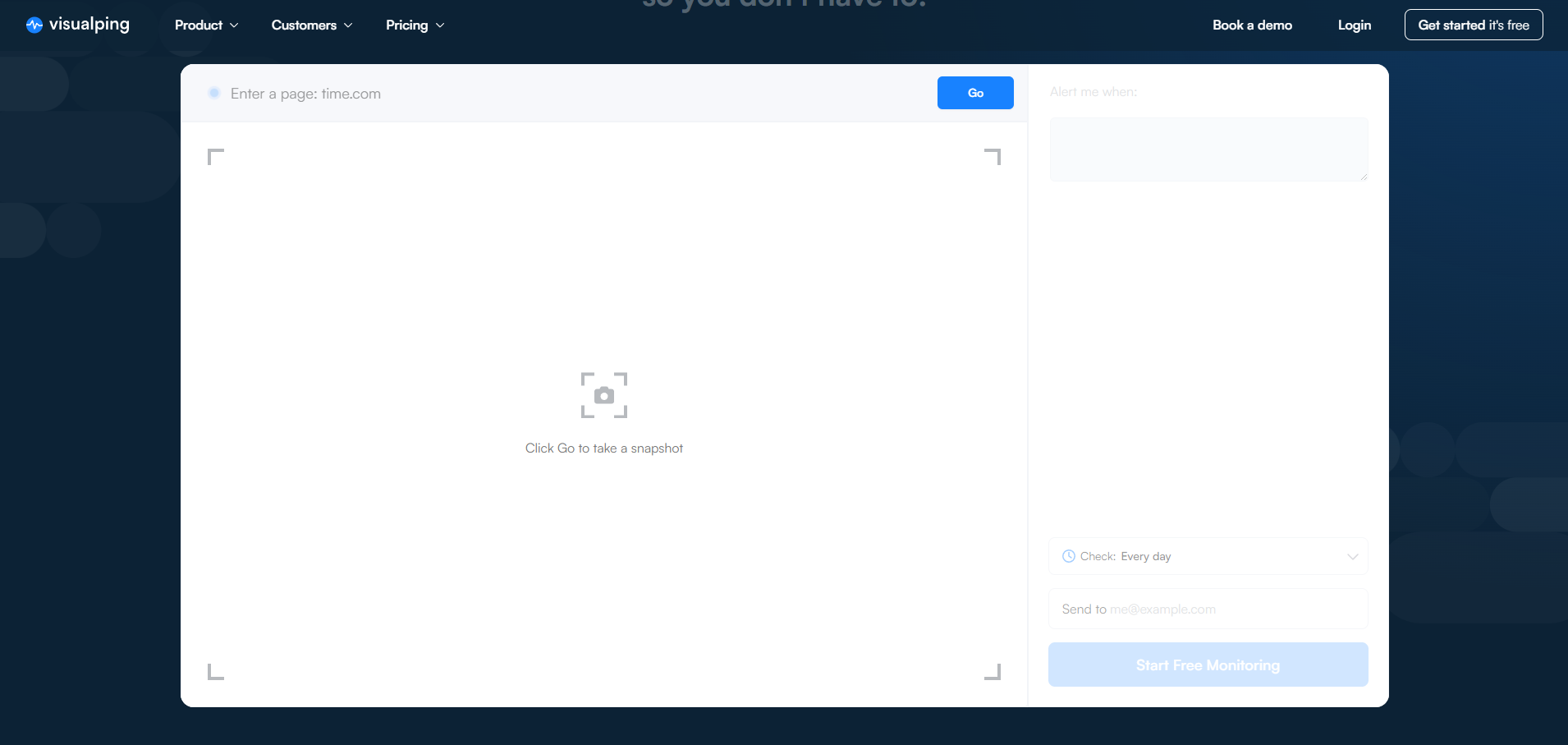 Visualping es una herramienta ideal para webmasters que necesitan saber cuándo cambia algo en un sitio web sin estar entrando todo el tiempo. Permite monitorear páginas completas o secciones puntuales y recibir alertas cuando se modifican textos, precios, elementos visuales o contenido clave. Es especialmente útil para controlar cambios en sitios de clientes, detectar modificaciones no autorizadas, seguir competidores, verificar landings activas o asegurarse de que nada se rompa sin aviso. Ahorra tiempo y evita sorpresas.