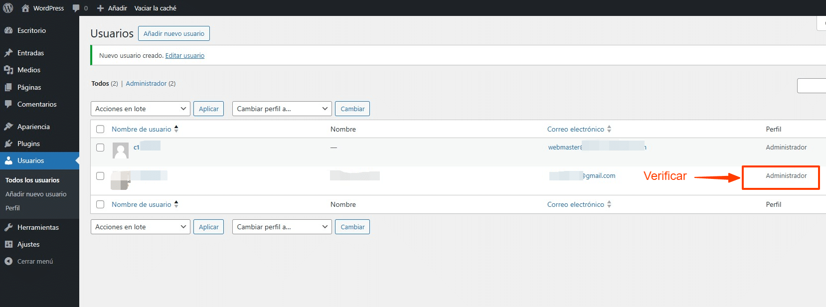 - Accede a tu panel de WordPress y ve a Usuarios > Todos los usuarios.
