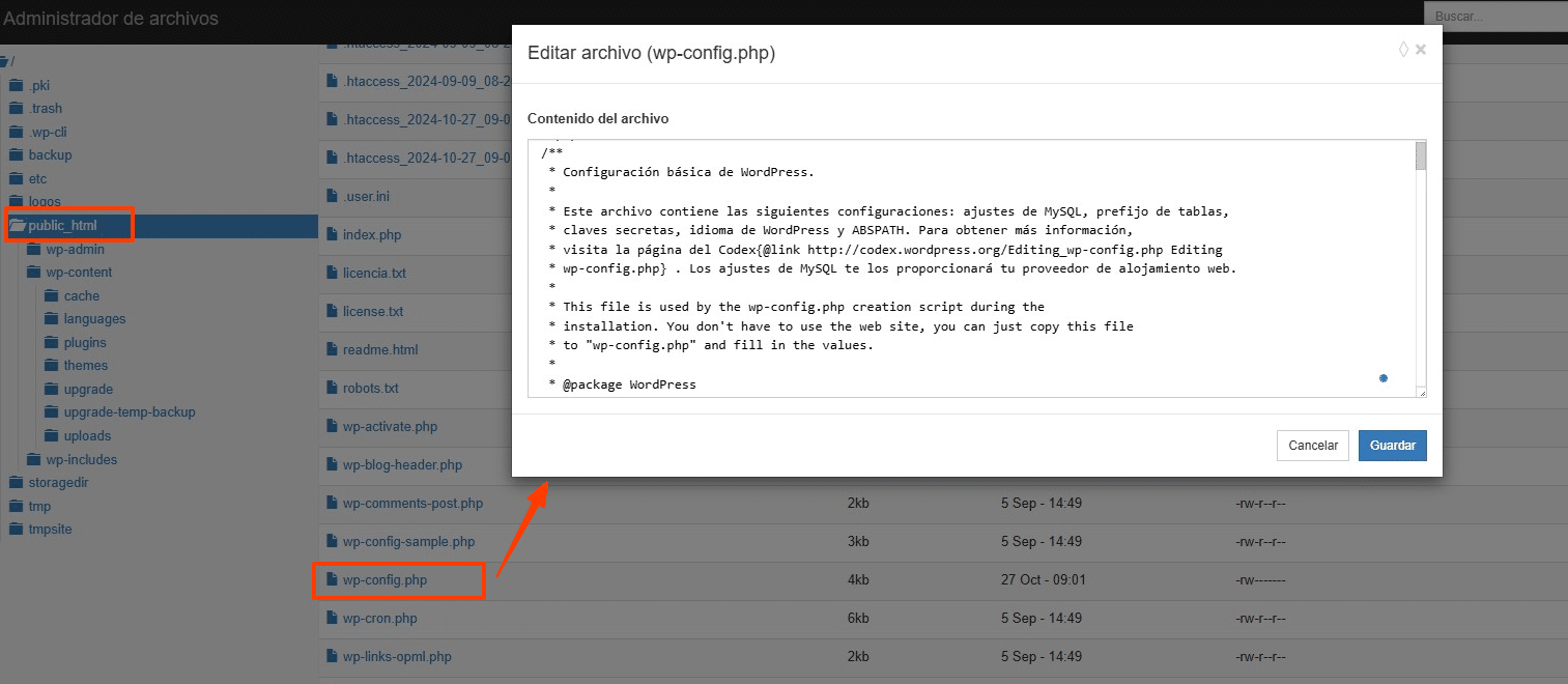 Editar el archivo wp-config.php:
