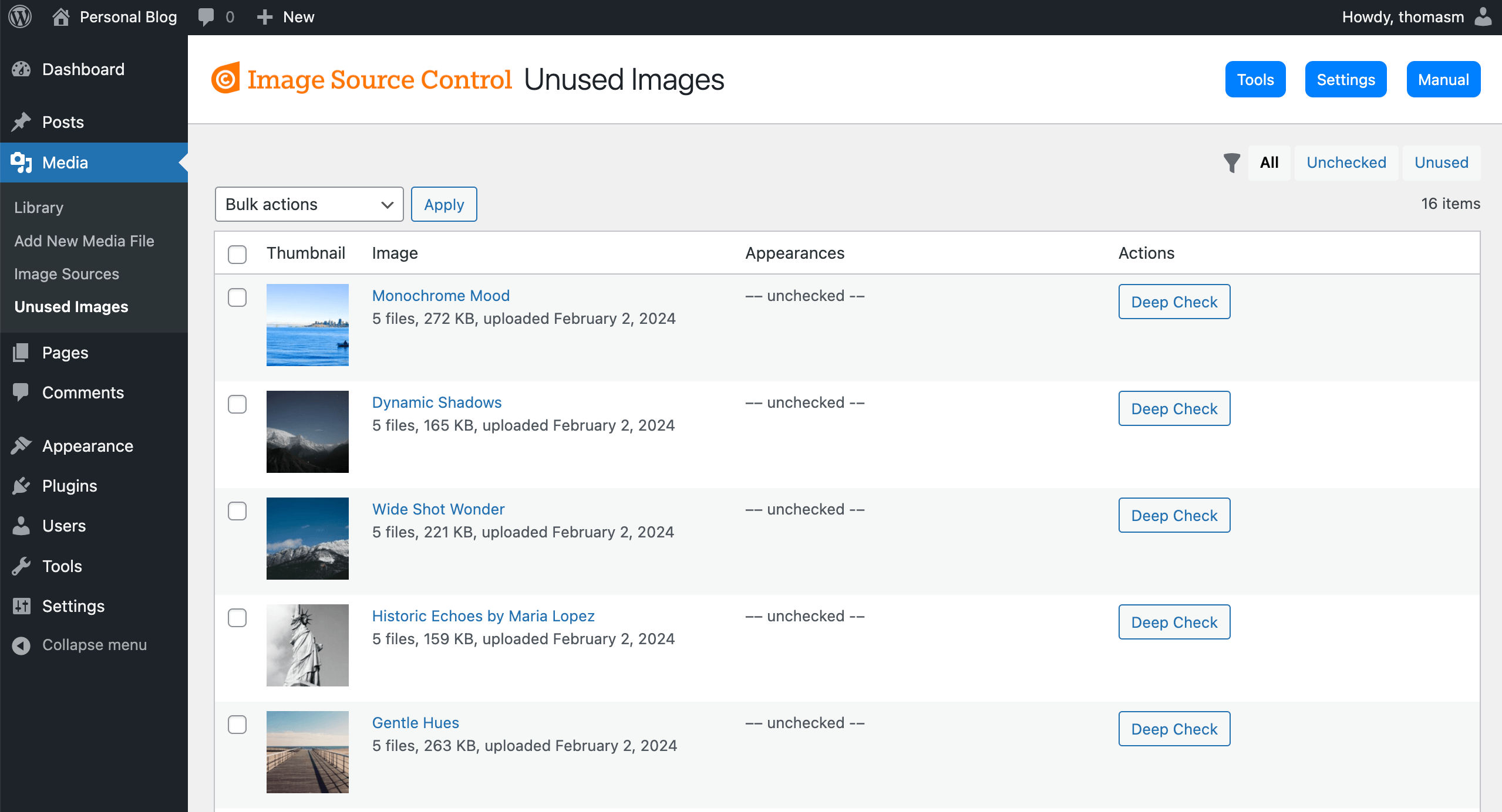 Una opción más eficiente es utilizar el plugin Image Source Control, que facilita la detección y eliminación de imágenes innecesarias. Este plugin, diseñado originalmente para gestionar atribuciones de autor en imágenes, ha ampliado sus funcionalidades para incluir la eliminación de archivos no utilizados.