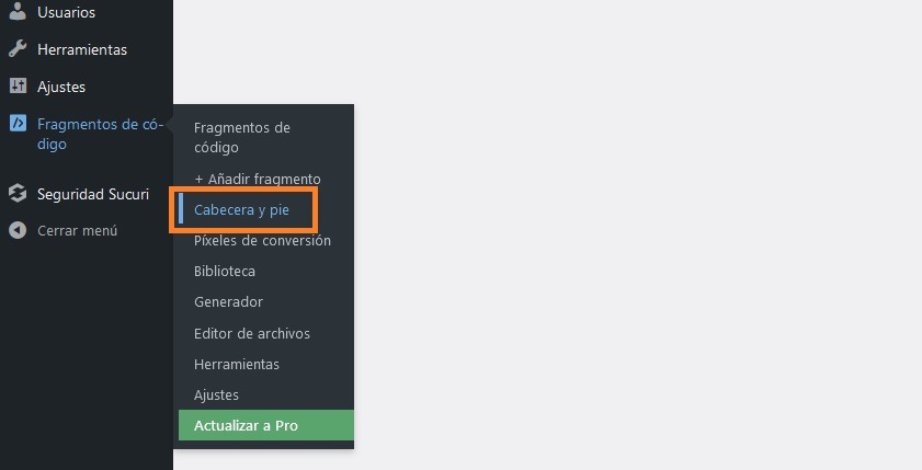 wp code cabecera y pie