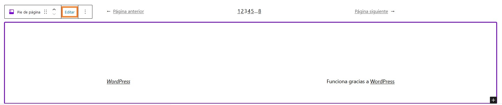 Utilizar el editor de bloques para modificar el pie de página o footer.
