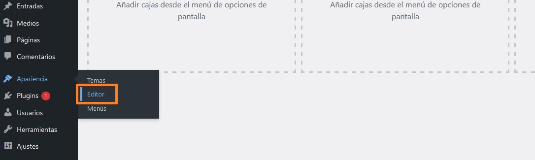 Para acceder al editor, haz clic en Apariencia y luego selecciona Editor.