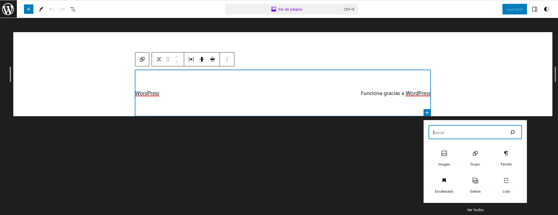 El editor ahora sólo mostrará el pie de página. Comienza a editarla agregando bloques al pie de página.