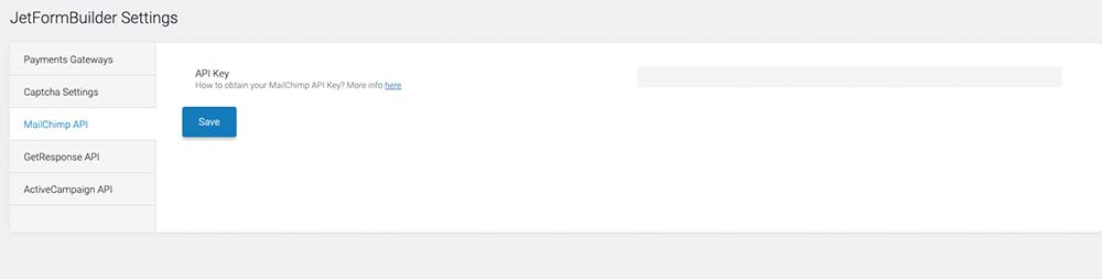 Numerosos sitios web comerciales ofrecen la oportunidad de suscribirse a su lista de correo electrónico al completar formularios en su plataforma. JetFormBuilder facilita esta misma funcionalidad. Este complemento viene listo para usar e integra de manera fluida servicios como Mailchimp, ActiveCampaign y GetResponse, que son algunas de las plataformas líderes en marketing por correo electrónico en el mercado actual.