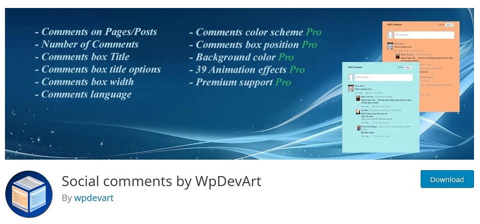 - Comentarios de Facebook de WpDevArt: este plugin de comentarios de WordPress te ayuda a conectar los comentarios de los usuarios en Facebook a tu sitio. El uso de este complemento puede aumentar tu tráfico y presencia en línea.