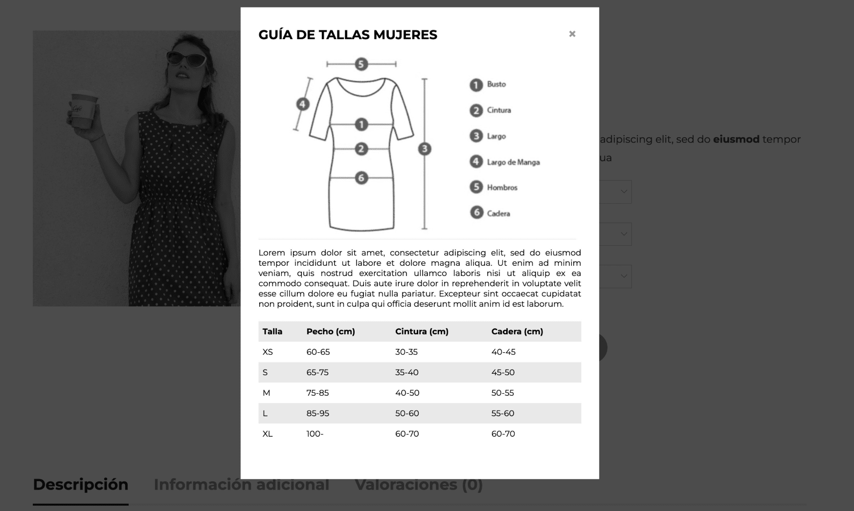 guía de talles en WooCommerce