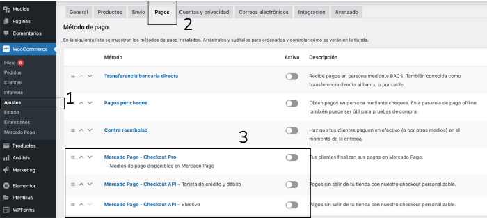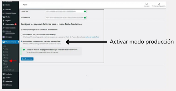 Configuración de la implementación de Woocommerce con Mercado Pago.