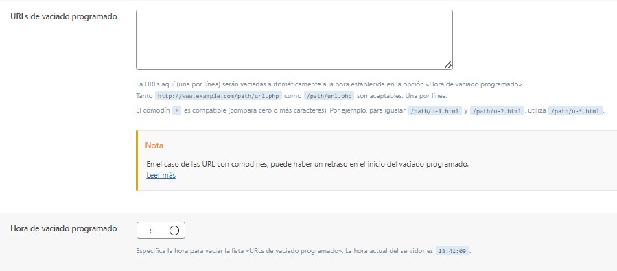 Aquí podrás encontrar la opción de “Vaciado Programado” de URLs. Esta puede servirte si estás realizando cambios constantes en una URL y quieres asegurarte que siempre estén refrescadas para el siguiente ingreso de los usuarios.