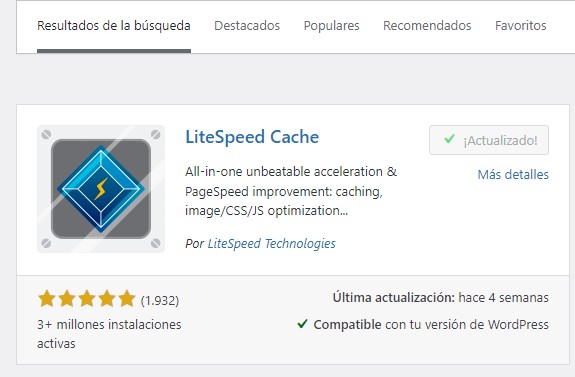 Por otro lado, si quieres potenciar el rendimiento de tu página web para los usuarios que ingresen, utilizar un plugin como LiteSpeed será tu mejor opción. Este plugin te ayudará principalmente con la velocidad de carga y te mostrará los cambios que hayas realizado luego de actualizar el Caché.