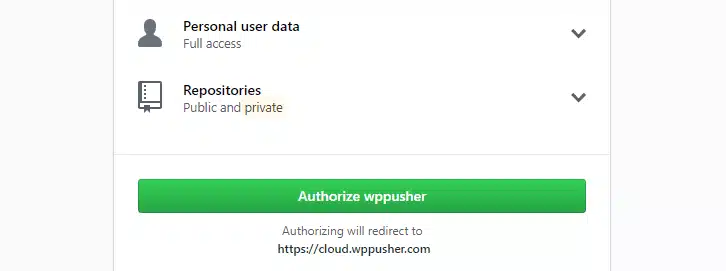 Después de iniciar sesión, deberás autorizar la aplicación WP Pusher haciendo clic en el botón verde.