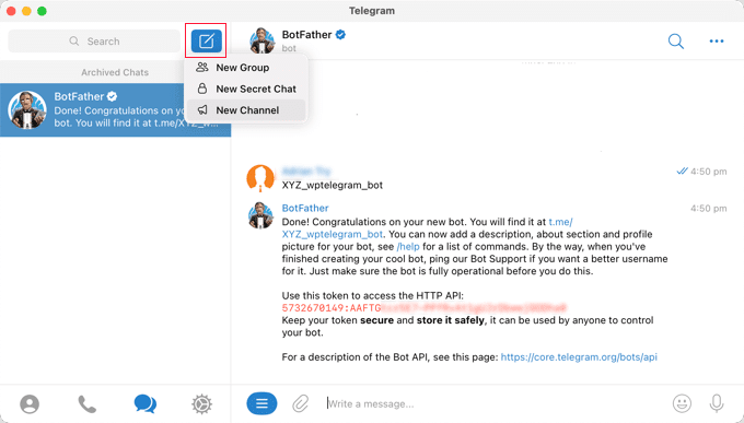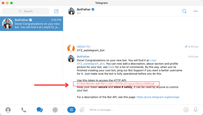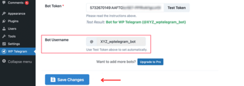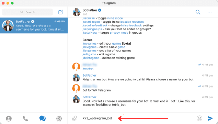 Para esta guía, escribiremos XYZ_wptelegram_bot.