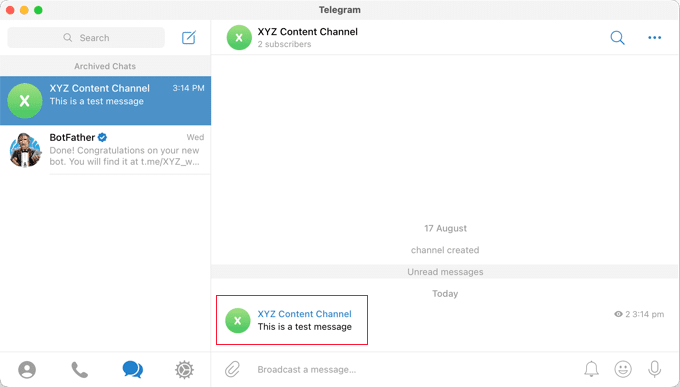 Si has configurado el plugin correctamente, deberías ver el mensaje de prueba en tu canal o grupo de Telegram.
