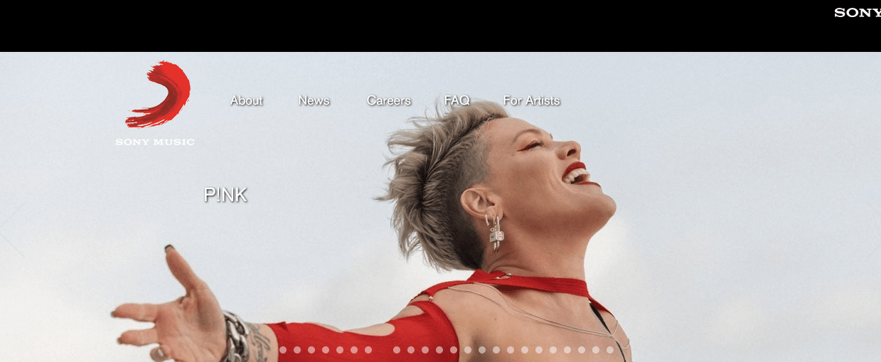 El sitio web de Sony Music otorga prioridad a la funcionalidad y la reputación de la marca. Mantiene un diseño sencillo y utiliza una combinación de negro, blanco y rojo para reflejar el logotipo de la empresa.