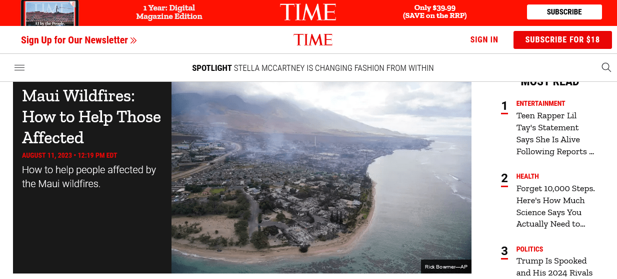 - Noticias y revistas: TIME, que utiliza el diseño para presentar varias entradas importantes sin complicar las cosas.