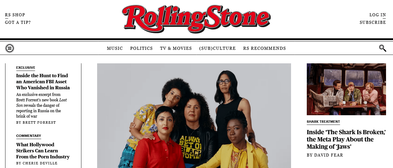 Los videos musicales, los álbumes, la cultura pop y los temas políticos se discuten en la revista en línea Rolling Stone.