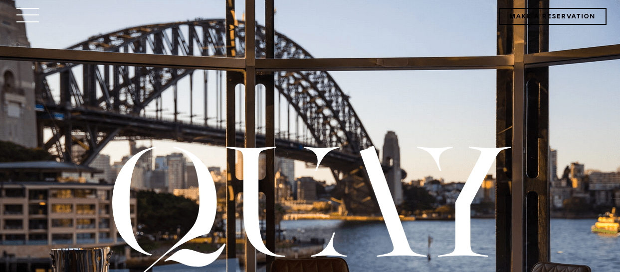 Un diseño sofisticado y simple es adecuado para el sitio web de un restaurante de alta cocina, como muestra Quay.