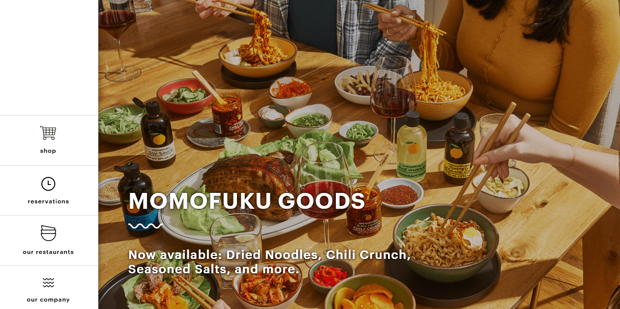 Momofuku es un excelente ejemplo de diseño de sitio web de WordPress para cualquier tipo de restaurante. A pesar del diseño básico, el sitio web de esta cadena de restaurantes sigue siendo atractivo y fácil de usar.
