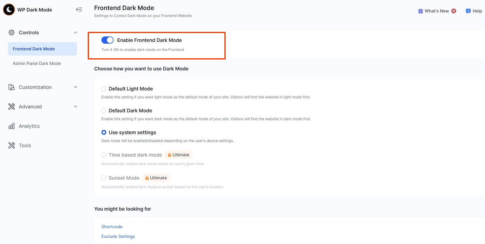 Paso 2: Configurar WP Dark Mode para habilitar el modo oscuro