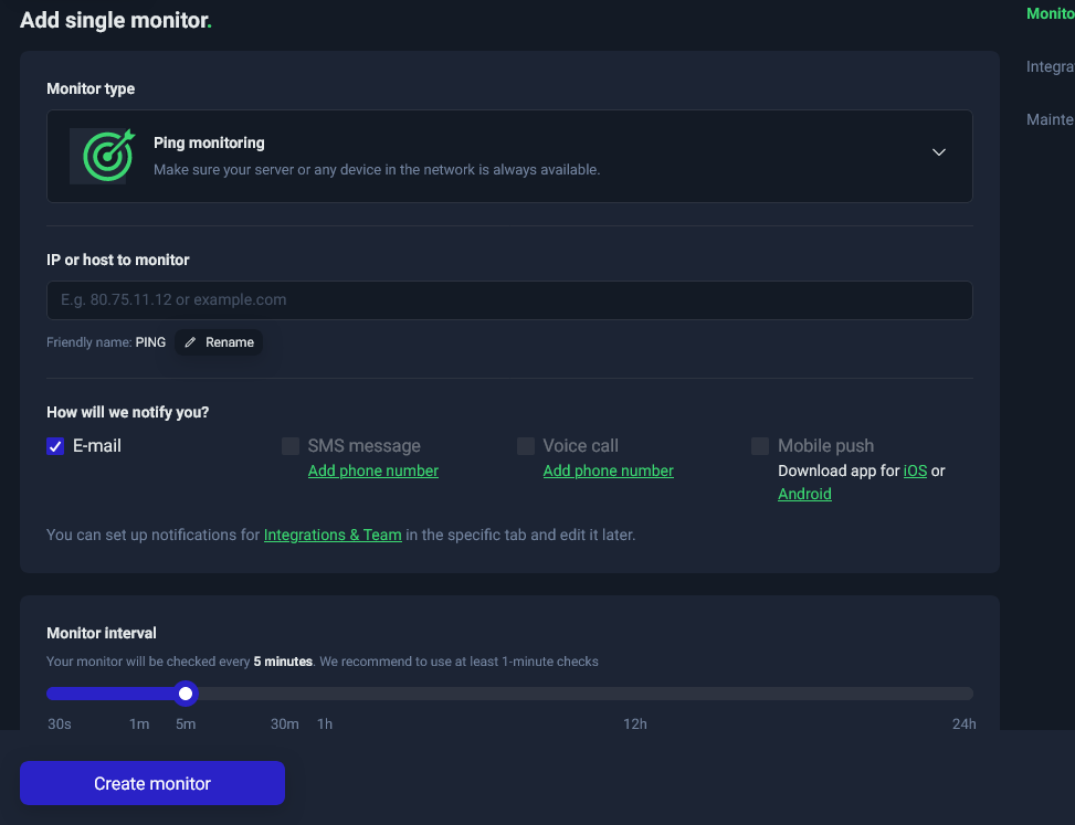 IMPORTANTE: Si eres el propietario del servidor, ten en cuenta que debes tener permiso en tu firewall para monitorearlo por Ping (ICMP). Abre una consola en tu PC local e intenta hacer un Ping para ver si tu servidor está habilitado.