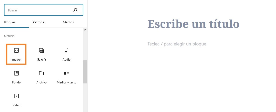 Para hacer esto, vamos a una publicación o página donde deseamos añadir la imagen y hacemos clic en el icono «+» para agregar un bloque nuevo.