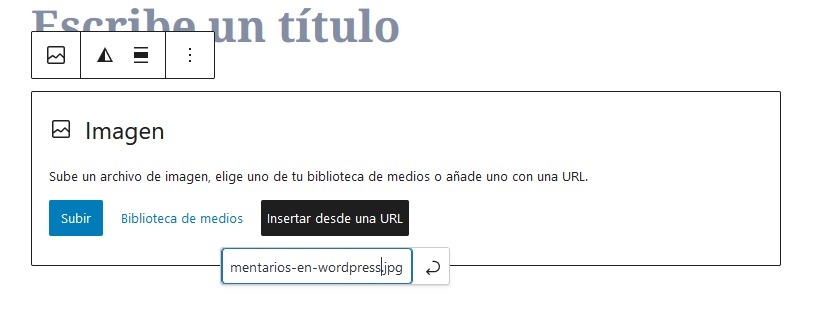 Luego, hacemos clic en el ícono Imagen para agregar un bloque de imagen donde podemos pegar nuestra URL recién actualizada.