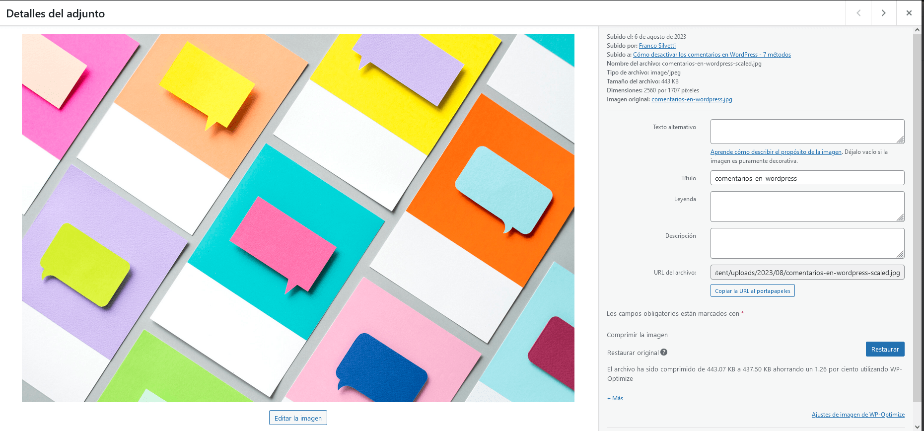 Adicionalmente, podemos agregar imágenes completamente nuevas tal como estaban antes del escalado de WordPress.