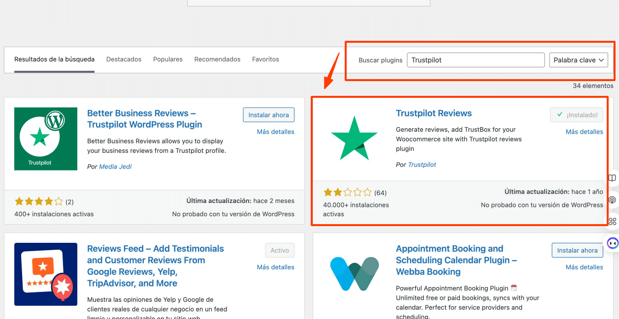 Paso 1: Instalar un plugin de reseñas de Trustpilot
