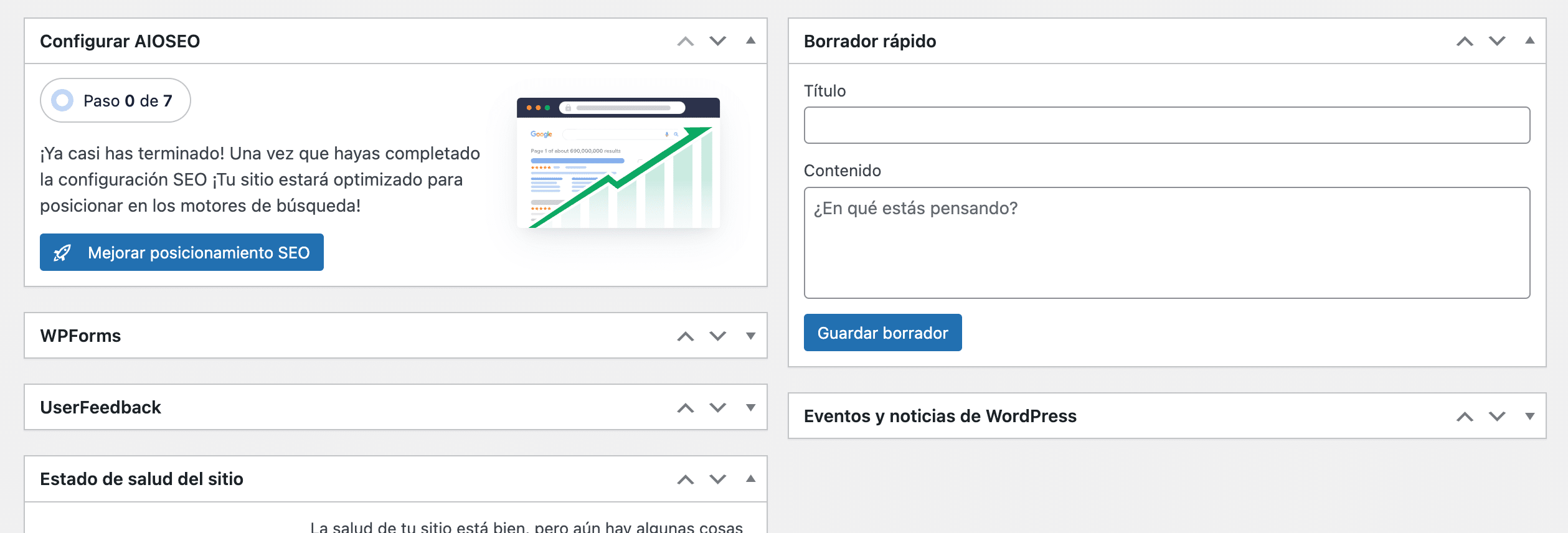 - Para agregar widgets adicionales, puedes usar plugins como «Dashboard Widgets Suite» que permiten añadir funcionalidades extras.