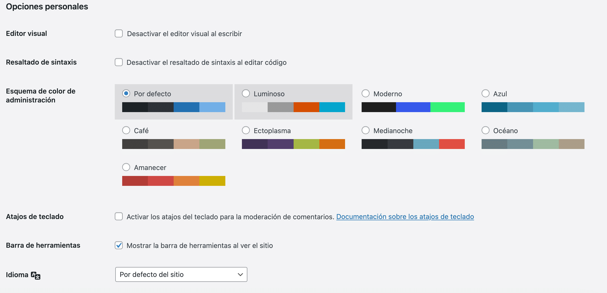 WordPress permite cambiar el esquema de color del dashboard para adaptarlo a tus gustos personales.