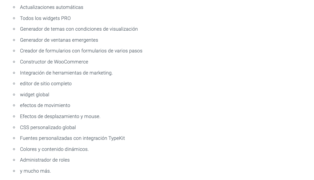 Al optar por PRO Elements, los usuarios tienen acceso a todas las funcionalidades premium de Elementor Pro. Desde su intuitivo constructor de páginas hasta una amplia variedad de widgets y módulos, herramientas para la creación de ventanas emergentes, personalización avanzada de fuentes, integraciones extendidas y mucho más, PRO Elements ofrece una experiencia completa de Elementor Pro sin la necesidad de adquirir una licencia oficial. - Adaptación y distribución de actualizaciones: